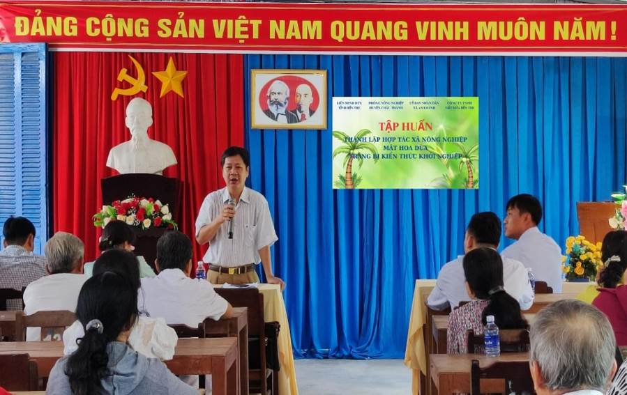LMHTX Bến Tre tập huấn kiến thức cho xã viên Người giữ dừa, xã An Khánh, huyện Châu Thành
