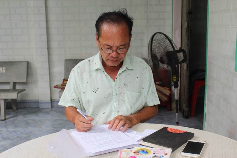 Ông Hai Vũ chăm chú làm việc về công tác xã hội tại gia đình