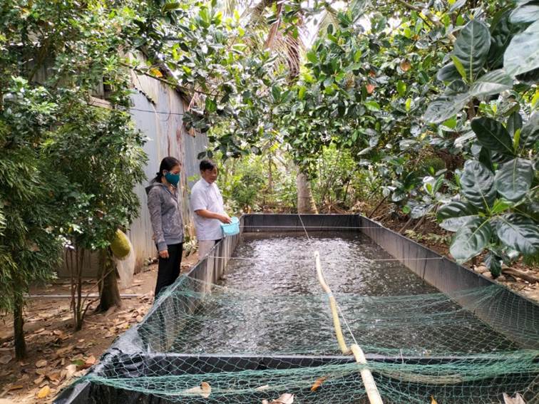 Đến với ấp Chợ, xã Thành Triệu, ai ai cũng biết ông Nguyễn Văn Mười là Nông dân sản xuất giỏi, năm nay ông đã 62 tuổi nhưng rất cường tráng, từ tờ mờ sáng ông đã cặm cụi ngoài vườn để vun phân, tưới nước cho vườn bưởi Da xanh, những năm gần đây do ảnh hưởng hạn mặn, dịch bệnh kéo dài cây trái mất mùa, rớt giá, đời sống kinh tế của gia đình gặp khó khăn. Hưởng ứng phong trào “Đồng khởi khởi nghiệp”, sau thời gian suy tính ông đã mạnh dạnh chuyển đổi cơ cấu cây trồng vật nuôi cho phù hợp với điều kiện biến đổi khí hậu, ông đã mạnh dạn xây bể trên bờ để nuôi cá rô.
