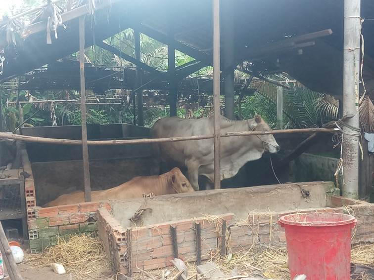 Theo chị Lê Thị Hải, nuôi bò thịt không tốn công đi chăn, bò lại nhanh lớn nên rất phù hợp với mục đích vỗ béo lấy thịt. Tuy nhiên, 100% nguồn thức ăn cho bò là do người nuôi cung cấp, vì vậy, khi nuôi cần phải tính toán số lượng bò phù hợp với diện tích trồng cỏ để bảo đảm đủ thức ăn. Nuôi bò thịt nhốt chuồng cần tuân thủ thời gian cho ăn, chế độ ăn với khẩu phần phù hợp. Một con bò nặng khoảng 200kg mỗi ngày ăn 15-20kg cỏ và 5kg thức ăn tinh. Để nuôi 4 con bò vỗ béo, chị Hải trồng 1.500m2 cỏ voi và mua rơm dự trữ, kết hợp cho bò ăn cám dừa,…. ngoài ra, chị cho bò ăn bổ sung thức ăn công nghiệp giúp bò khỏe mạnh, tăng trọng nhanh, sau một năm sẽ đủ trọng lượng để xuất bán. Trung bình mỗi con bò thịt sau khi trừ chi phí mua giống, nhân công, thức ăn... cho lãi từ 12 đến 15 triệu đồng.