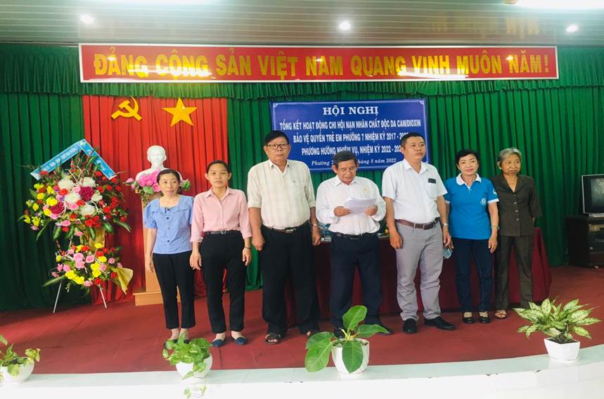 Sáng ngày 31/8/2022, Chi hội nạn nhân chất độc da cam/dioxin - Bảo vệ quyền trẻ em phường 7, thành phố Bến Tre đã tổ chức Hội nghị tổng kết hoạt động nhiệm kỳ 2017-2022. Đến dự có bà Trịnh Thị Thanh Bình, Phó Chủ tịch Hội nạn nhân chất độc da cam/dioxin - Bảo vệ quyền trẻ em tỉnh, lãnh đạo: Ban Dân vận Thành ủy, Hội nạn nhân chất độc da cam/dioxin - Bảo vệ quyền trẻ em thành phố; Đảng ủy, HĐND, UBND, Ủy ban MTTQ Việt Nam, Bí thư Chi bộ,Trưởng ban công tác Mặt trận, Trưởng 05 khu phố và 30 cán bộ, hội viên tham dự.