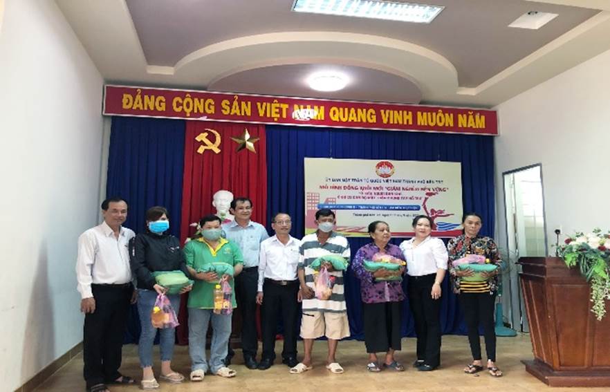 Nhân dịp triển khai mô hình dân vận khéo năm 2022 của Ban Thường trực Ủy ban MTTQ Việt Nam thành phố Bến Tre, mạnh thường quân và Hội Liên hiệp Phụ nữ phường 8 có tặng quà cho các hộ nghèo, hộ cận nghèo. Song song đó, BTT Ủy ban MTTQ Việt Nam thành phố đề ra một số giải pháp đa dạng hoá sinh kế cho người nghèo, xây dựng các mô hình sinh kế giảm nghèo: chung tay hỗ trợ tạo việc làm, tăng thu nhập cho hộ nghèo, người nghèo thông qua các chính sách tín dụng ưu đãi, dạy nghề, khuyến nông, khuyến công và các mô hình này tập trung phát triển sản xuất cây trồng vật nuôi có lợi thế cho người dân, ứng dụng tiến bộ mới, cơ giới hoá vào sản xuất... với hy vọng các hộ nghèo phối hợp cùng địa phương cố gắng phấn đấu vươn lên thoát nghèo bền vững./.