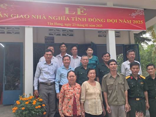 Vừa qua, xã Tân Hưng phối hợp đơn vị tài trợ tổ chức lễ bàn giao nhà nghĩa tình đồng đội, tình thương đồng đội và trao tặng 50 suất quà cho gia đình chính sách, hội viên Cựu chiến binh nghèo, cận nghèo khó khăn trên địa bàn xã Tân Hưng.