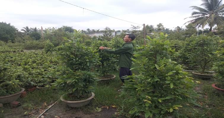 Có thâm niên hơn 15 năm trong việc trồng hoa kiểng bán tết, ông Trần Văn My, ấp Tân Thạnh, xã Tân Thiềng cho biết, công việc tất bật gần như quanh năm để chăm sóc những chậu mai vàng bán tết. Năm nay ông cho ra thị trường với 1.500 chậu mai vàng lớn nhỏ các loại, giá cả giao động từ 400.000 đồng đến 2.000.000 đồng một chậu. Tuy vất vả nhưng đổi lại thu nhập khá cao cho gia đình.