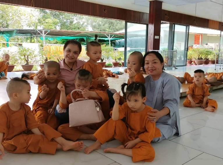 Bà Trung Ánh (thứ nhất bên phải) cùng với các bé