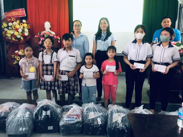 Dịp này nhà tài trợ hỗ trợ 90 phần quà cho học sinh nghèo, hộ nghèo, hộ có hoàn cảnh khó khăn. Trong đó gồm 40 phần quà cho hộ nghèo, 40 phần quà cho học sinh nghèo và 10 xuất học bổng cho học sinh có hoàn cảnh khó khăn mỗi phần quà gồm mì, tập, viết, các nhu yếu phẩm và tiền mặt (mỗi phần quà trị giá trên 500.000 đồng). với tổng số tiền trên 45.000.000 đồng.