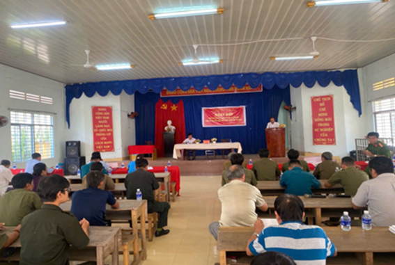 Trong Ngày hội cán bộ và Nhân dân đươc nghe báo cáo đánh giá tình hình, kết quả công tác xây dựng phong trào Toàn dân bảo vệ An ninh Tổ quốc trong 8 tháng đầu năm 2024 trên địa bàn và ôn lại vị trí và tầm quan trọng của Ngày hội Toàn dân bảo vệ An ninh Tổ quốc. Thời gian qua, lực lượng Công an tăng cường công tác nắm tình hình, quản lý địa bàn, đối tượng; chủ động xây dựng các kế hoạch tổ chức các đợt cao điểm tấn công trấn áp các loại tội phạm; tiếp tục nghiên cứu, xây dựng và nhân rộng các mô hình, điển hình tiên tiến về phòng, chống tội phạm, xây dựng phong trào toàn dân bảo vệ An ninh Tổ quốc như: Tổ chức tuần tra vũ trang, tuần tra giao thông 79 cuộc với 715 lực lượng tham gia, qua đó phát hiện và giải tán 04 nhóm đánh bạc; tham mưu ra quyết định xử phạt hành chính 19 trường hợp vi phạm pháp luật; phối hợp tuyên truyền 43 hộ kinh doanh buôn bán về an toàn phòng cháy, chữa cháy... Từ đó tình hình an ninh chính trị trên địa bàn luôn diễn biến ổn định, hệ thống chính trị giữ vững, các sự kiện chính trị, lễ hội quan trọng luôn đảm bảo tuyệt đối an ninh, an toàn.