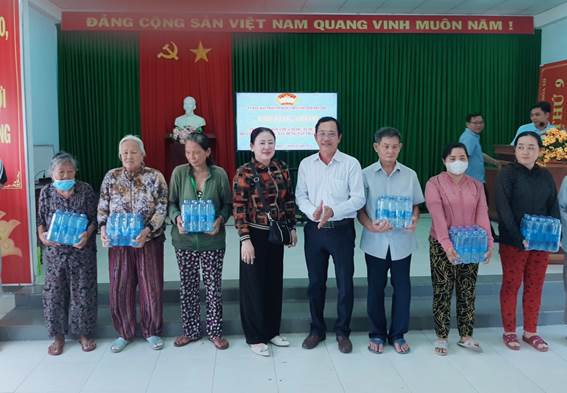 Tại chương trình, ông Trần Đông Xuân, Giám đốc Công ty Cổ phần Đầu tư xây dựng thương mại Tấn Thắng trao tặng 10 bồn chứa nước và 24.000 chai nước loại 500 ml cho người dân huyện Thạnh Phú.