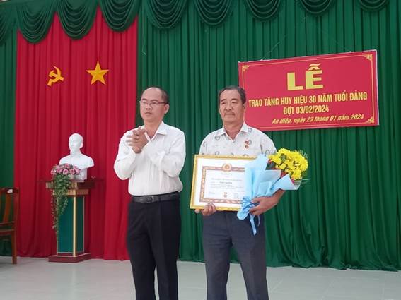 Tại buổi lễ, đồng chí Cao Công Thức-Ủy viên Ban Thường vụ Huyện ủy, Chủ tịch Ủy ban MTTQ Việt Nam huyện Ba Tri đã chúc mừng, trân trọng trao Huy hiệu 30 năm tuổi Đảng cho đồng chí đảng viên của Đảng bộ xã An Hiệp và phát biểu khẳng định: Việc trao tặng Huy hiệu Đảng là sự ghi nhận của Đảng đối với quá trình cống hiến của đảng viên cho sự nghiệp cách mạng của Đảng. Đây không chỉ là vinh dự của cá nhân mà còn là vinh dự của Đảng bộ để từ đó, các đảng viên noi theo, tiếp tục rèn luyện, phấn đấu, hoàn thành xuất sắc nhiệm vụ được giao.