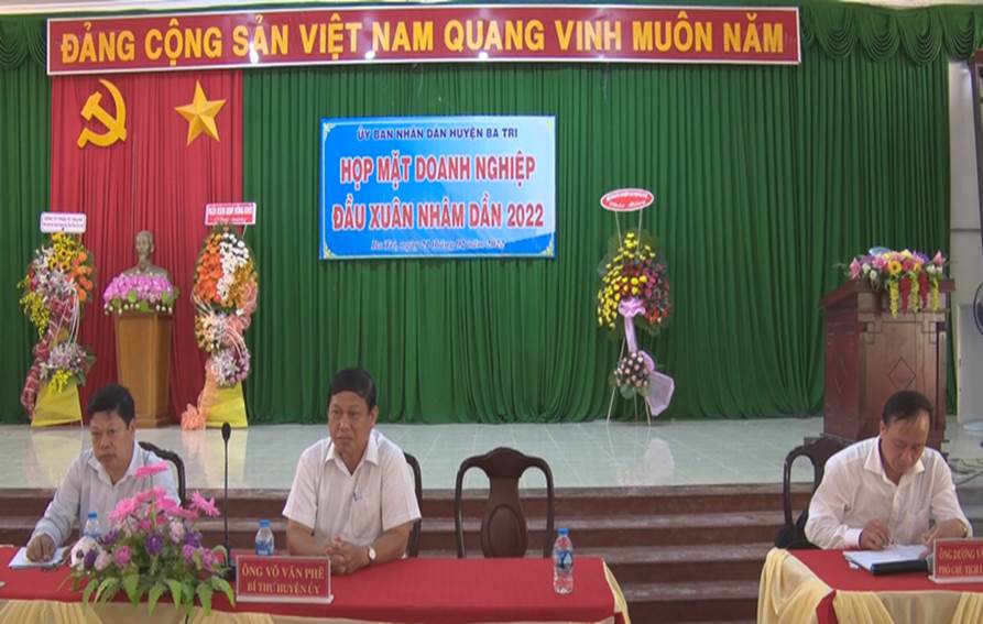 Chiều ngày 21/02/2022, Ủy ban nhân dân huyện Ba Tri tổ chức họp mặt doanh nghiệp đầu xuân Nhâm Dần 2022. Bí thư Huyện ủy Võ Văn Phê, Chủ tịch UBND huyện Dương Minh Tùng, Phó Chủ tịch UBND huyện Dương Văn Chương chủ trì buổi họp mặt. Đến dự buổi họp mặt có gần 40 doanh nghiệp đóng trên địa bàn huyện.