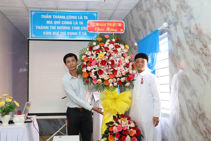Ông Nguyễn Hồng Quân - Trưởng ban Ban Tôn giáo– Sở Nội vụ tặng hoa chúc mừng Ban Đại diện Cao đài Tây Ninh khai giảng khóa học