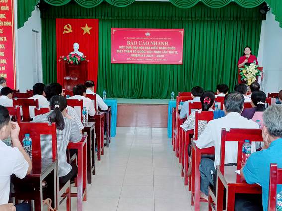 Ngày 25/10/2024, Ban Thường trực Ủy ban MTTQ Việt Nam tỉnh Bến Tre thông tin nhanh kết quả Đại hội đại biểu toàn quốc MTTQ Việt Nam lần thứ X, nhiệm kỳ 2024-2029. Bà Nguyễn Thị Hồng Nhung, Ủy viên Ủy ban Trung ương MTTQ Việt Nam, Ủy viên Ban Thường vụ Tỉnh ủy, Chủ tịch Ủy ban MTTQ Việt Nam tỉnh dự và là báo cáo viên của hội nghị. Tham dự còn có cán bộ cơ quan Ủy ban MTTQ Việt Nam tỉnh, Chủ tịch, Phó Chủ tịch Ủy ban MTTQ Việt Nam các huyện, thành phố; Chủ tịch, Phó Chủ tịch Ủy ban MTTQ Việt Nam các xã, phường, thị trấn trên địa bàn tỉnh.