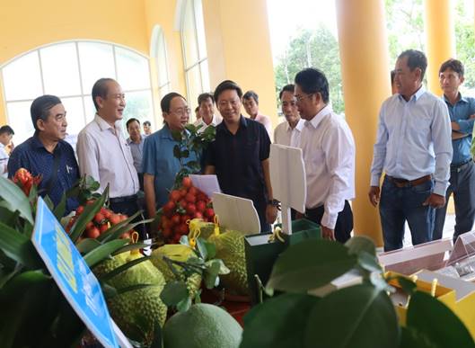 Các đại biểu tham quan gian hàng trưng bày sản phẩm của nông dân tỷ phú
