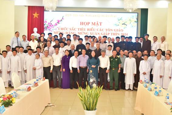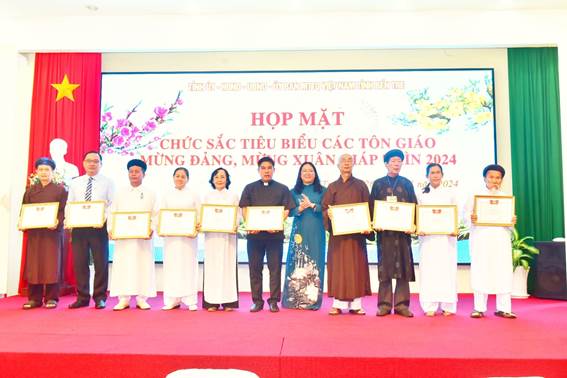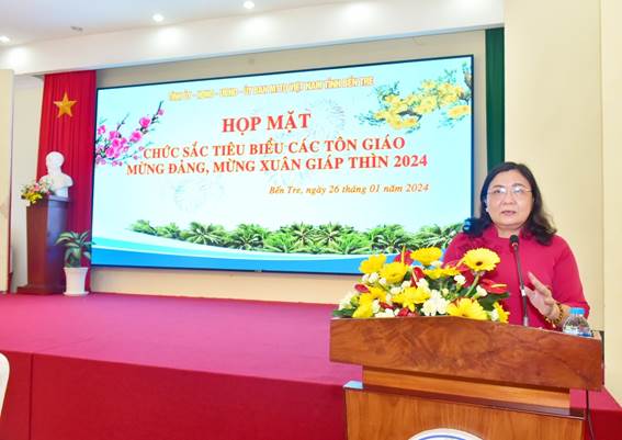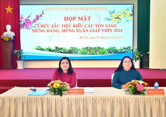 Ngày 26/01/2024, Tỉnh ủy, Hội đồng nhân dân, Ủy ban nhân dân, Ủy ban MTTQ Việt Nam tỉnh Bến Tre tổ chức họp mặt chức sắc tiêu biểu các tôn giáo mừng Đảng, mừng Xuân Giáp Thìn 2024. Quyền Bí thư Tỉnh ủy Hồ Thị Hoàng Yến; Chủ tịch Ủy ban MTTQ Việt Nam tỉnh Nguyễn Thị Hồng Nhung; Phó Chủ tịch UBND tỉnh Nguyễn Thị Bé Mười cùng đại diện lãnh đạo các sở, ban, ngành, các tổ chức chính trị-xã hội và 150 đại biểu chức sắc tiêu biểu các tôn giáo tham dự.