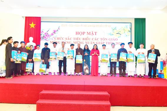 Nhân buổi họp mặt, Tỉnh ủy, HĐND, UBND, Ủy ban MTTQ Việt Nam tỉnh tặng quà lưu niệm đến đại biểu chức sắc tiêu biểu các tôn giáo nhân dịp mừng Đảng, mừng Xuân Giáp Thìn 2024.