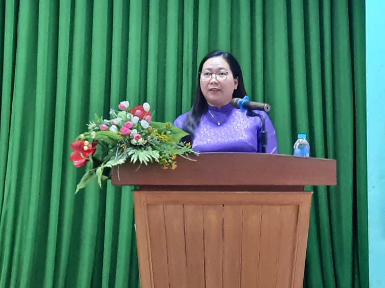 Đ/c Nguyễn Thị Hồng Nhung, Chủ tịch UB MTTQ tỉnh phát biểu khai giảng lớp tập huấn