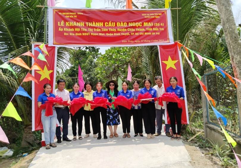 Ngày 22/4/2023, Hội Nạn nhân chất độc da cam/dioxin- Bảo vệ quyền trẻ em tỉnh Bến Tre kết nối với Nghệ sĩ Ưu tú Ngọc Mai ở quận Bình Thạnh, Thành phố Hồ Chí Minh đến thị trấn Tiên Thủy, huyện Châu Thành, tỉnh Bến Tre tổ chức khánh thành, bàn giao và đưa vào sử dụng cầu Đào Ngọc Mai (số 4) tại ấp Khánh Hội Tây, thị trấn Tiên Thủy, huyện Châu Thành, tỉnh Bến Tre. Bà Võ Thị Thủy- Phó Chủ tịch Hội Nạn nhân chất độc da cam/dioxin- Bảo vệ quyền trẻ em tỉnh Bến Tre, Nghệ sĩ Ưu tú Ngọc Mai dự.