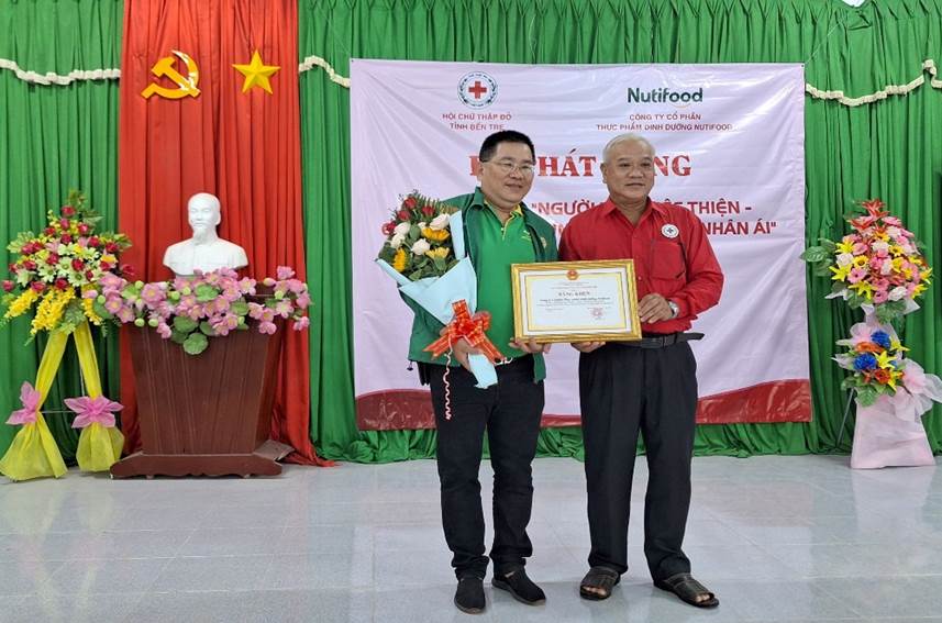 Dịp này, Hội Chữ thập đỏ tỉnh trao tặng bằng khen của Ủy ban nhân dân tỉnh cho đại diện Công ty Cổ phần Thực phẩm dinh dưỡng Nutifood vì đã có những thành tích đóng góp cho công tác an sinh xã hội trên địa bàn tỉnh.