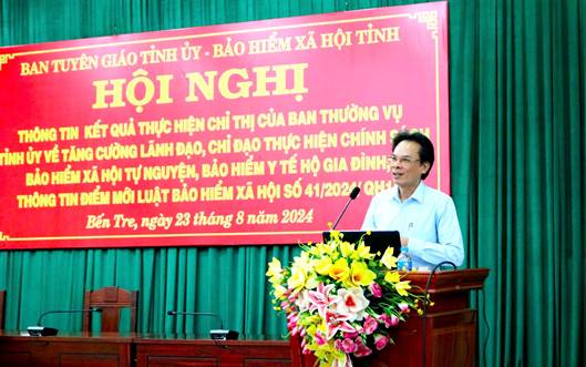 Là cơ quan thường trực Ban Chỉ đạo thực hiện chính sách BHXH, BHYT tỉnh, BHXH tỉnh đã tích cực tham mưu Tỉnh ủy, UBND tỉnh ban hành các văn bản chỉ đạo triển khai các hoạt động thuộc lĩnh vực phụ trách, đồng thời thường xuyên theo dõi, đôn đốc, tham mưu hoàn thành đúng tiến độ nhiệm vụ theo Kế hoạch công tác năm 2024. Công tác phối hợp với các ngành và thành viên Ban Chỉ đạo được tăng cường và chuyển biến rõ nét, đặc biệt là phối hợp thực hiện nhiều hoạt động truyền thông chính sách BHXH, BHYT, BHTN: Phối hợp với Ban Tuyên giáo Tỉnh ủy tổ chức Hội nghị thông tin kết quả bước đầu thực hiện Chỉ thị số 13-CT/TU ngày 23/02/2023 của Ban Thường vụ Tỉnh ủy về tăng cường lãnh đạo, chỉ đạo thực hiện chính sách BHXH tự nguyện, BHYT hộ gia đình trên địa bàn tỉnh; thông tin về những điểm mới của Luật BHXH số 41/2024/QH15. Ký kết Chương trình phối hợp truyền thông chính sách, pháp luật BHXH, BHYT năm 2024 với 13 sở, ngành, đoàn thể. Phối hợp với Công an tỉnh Bến Tre triển khai, thực hiện công tác thanh tra, kiểm tra các hành vi vi phạm pháp luật BHXH, BHYT; triển khai phát triển thanh toán không dùng tiền mặt trong công tác chi trả lương hưu, trợ cấp BHXH trên nền cơ sở dữ liệu quốc gia về dân cư.