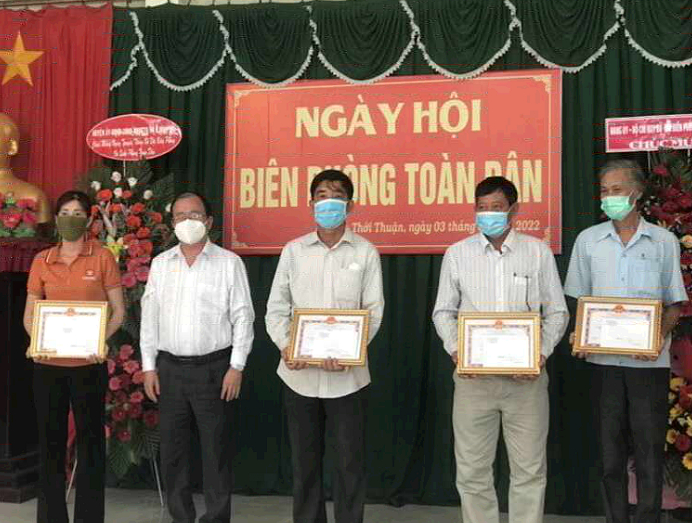 Dịp này, Bộ Tư lệnh BĐBP đã tặng kỷ niệm chương Vì chủ quyền an ninh biên giới cho 03 cá nhân có nhiều đóng góp vào sự nghiệp quản lý, bảo vệ chủ quyền an ninh biên giới quốc gia và xây dựng lực lượng BĐBP. UBND huyện, xã khen thưởng cho nhiều tập thể, cá nhân tiêu biểu trong phong trào bảo vệ chủ quyền an ninh biên giới biển và trong thực hiện Ngày Biên phòng toàn dân gắn với thực hiện Chỉ thị 01 của Thủ tướng Chính phủ. Ngoài ra, hướng đến Ngày hội Biên phòng toàn dân, Công ty TNHH Điện gió Sunpro số 8 đã hỗ trợ 40 triệu đồng xây dựng nhà tình thương cho hộ nghèo của xã Thới Thuận.