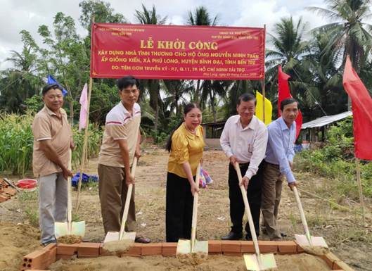 Ngày 03/5/2025, Hội NNCĐDC/dioxin - BVQTE tỉnh Bến Tre phối hợp với UBND xã Phú Long, huyện Bình Đại tổ chức khởi công xây dựng nhà tình thương cho ông Nguyễn Minh Tuấn - Ấp Giồng Kiến, xã Phú Long, huyện Bình Đại thuộc hộ cận nghèo của xã, gia đình có 2 nhân khẩu, không đất canh tác, hàng ngày ông phải đi làm thuê.