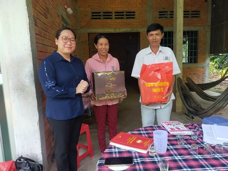 Chủ tịch Ủy ban MTTQ Việt Nam tỉnh tặng quà cho Ban Công tác Mặt trận ấp