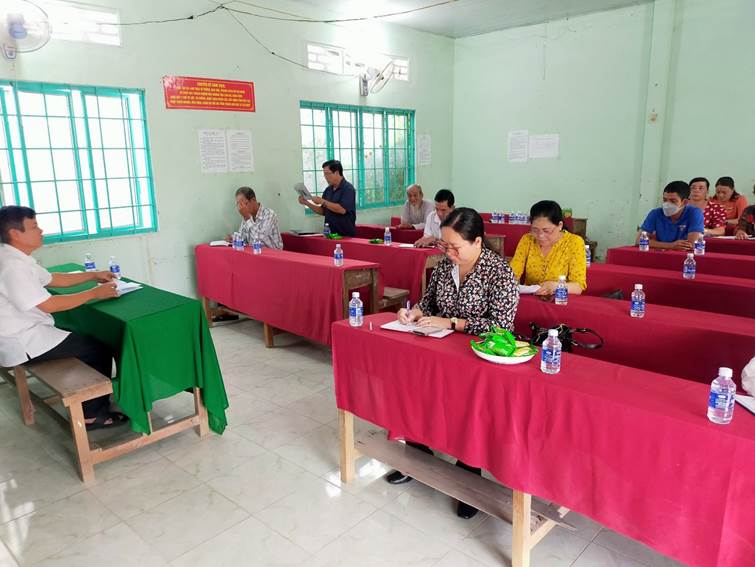 Quang cảnh sinh hoạt Ban Công tác Mặt trận ấp Đồng Nhơn