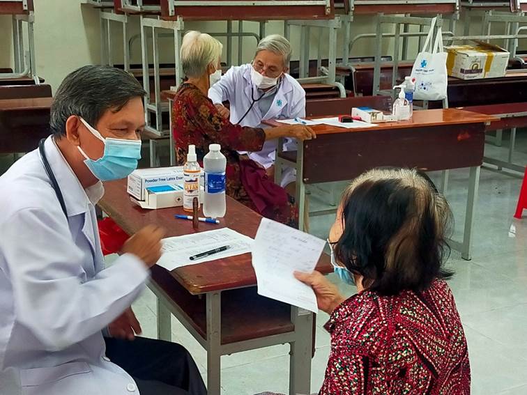 Tại đây, đoàn cán bộ y, bác sĩ Bệnh viện Đại học Y dược Thành phố Hồ Chí Minh đã tiến hành khám các bệnh lý tổng quát như hô hấp, tiêu hóa, test đo đường huyết, xét nghiệm viêm gan, phát thuốc và tư vấn chăm sóc sức khỏe miễn phí cho 500 người già, người nghèo của 03 xã Tân Phong, Đại Điền, Thới Thạnh (huyện Thạnh Phú).