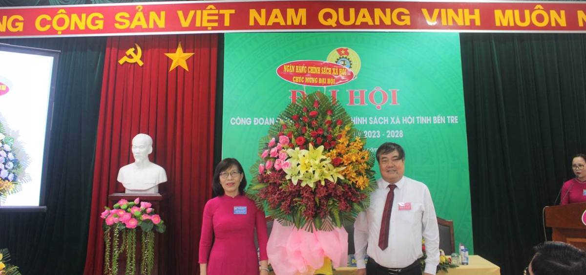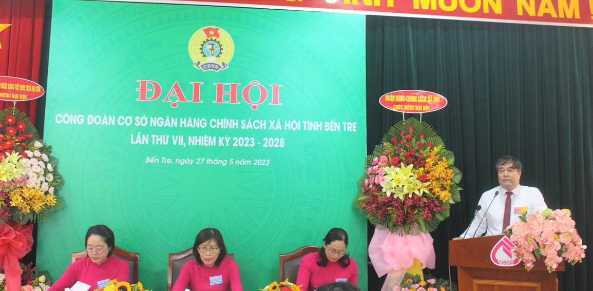 Đại hội vinh dự được đón đồng chí Nguyễn Minh Phương, Phó Bí thư Thường trực Đảng ủy NHCSXHTW, Uỷ viên Ban chấp hành Công đoàn NHCSXH; đồng chí Trần Lam Thuỳ Dương, Bí thư Đảng uỷ, Giám đốc Chi nhánh; đồng chí Đặng Thị Như Phượng, đại diện Công đoàn Ngân hàng Việt Nam trên địa bàn Bến Tre tới dự và phát biểu chỉ đạo.
