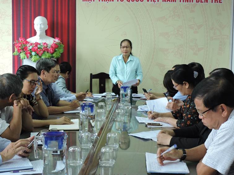 Phó Chủ tịch Ủy ban MTTQ Việt Nam tỉnh Đặng Thị Phượng phát biểu kết luận tại cuộc họp