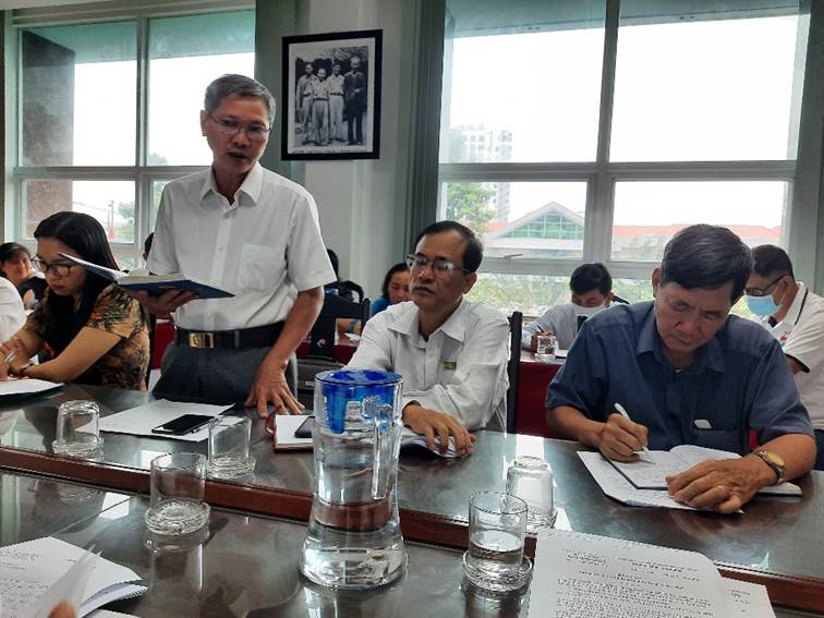 Đ/c Nguyễn Hữu Cách-PCT Uỷ ban MTTQ Việt Nam huyện Giồng Trôm phát biểu tại cuộc họp