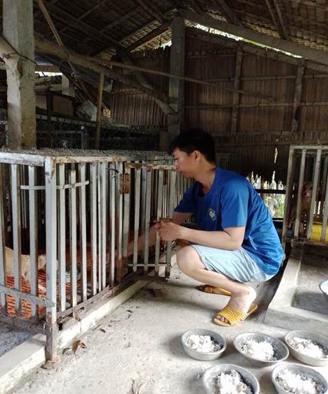 Với mong muốn xây dựng mô hình đem lại thu nhập cho gia đình từ nuôi chó kiểng, sau khi đi nhiều nơi học hỏi kinh nghiệm của những người nuôi chó kiểng và tham khảo trên sách báo, mạng internet về kỹ thuật nuôi chó kiểng. Năm 2017, anh mạnh dạn làm chuồng và mua hai con chó pug giống với số tiền đầu tư ban đầu 10 triệu đồng. Anh cho biết nuôi chó pug vốn đầu tư không quá cao và nhanh thu hồi vốn, chúng rất dễ nuôi và không tốn quá nhiều công chăm sóc, khẩu phần ăn của chó pug cũng gần giống chó ta, gồm cơm, các loại thịt, cá, trứng, nội tạng heo, rau củ,… chó pug mang thai từ 65 đến 70 ngày, sau khi sinh ra khoảng 01 tháng là có thế bán cho thương lái với giá dao động trên dưới 02 triệu đồng/con. Như vậy, chỉ sau vài tháng nuôi là có thể thu hồi vốn. Sau 05 năm chăm sóc, mô hình này đã đem về cho anh hơn 200 triệu đồng, hiện nay anh đã nhân đàn lên 11 con chó giống sinh sản. Để đáp ứng thị hiếu của người nuôi, anh đầu tư mua thêm nhiều giống chó khác như phốc sóc và bulldog.