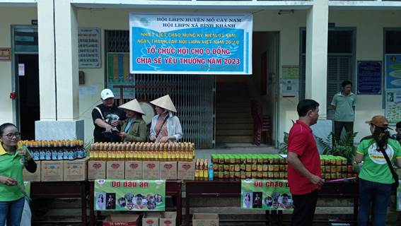 Ngày 15/10/2023, Tại Trường THCS xã Bình Khánh, Hội liên hiệp phụ nữ xã- UBND xã Bình Khánh, huyện Mỏ Cày Nam phối hợp các nhóm thiện nguyện tổ chức chương trình “Hội chợ 0 đồng” chia sẻ yêu thương cho hơn 300 lượt người nghèo, bệnh tật, người có hoàn cảnh khó khăn, học sinh trong xã Bình Khánh.