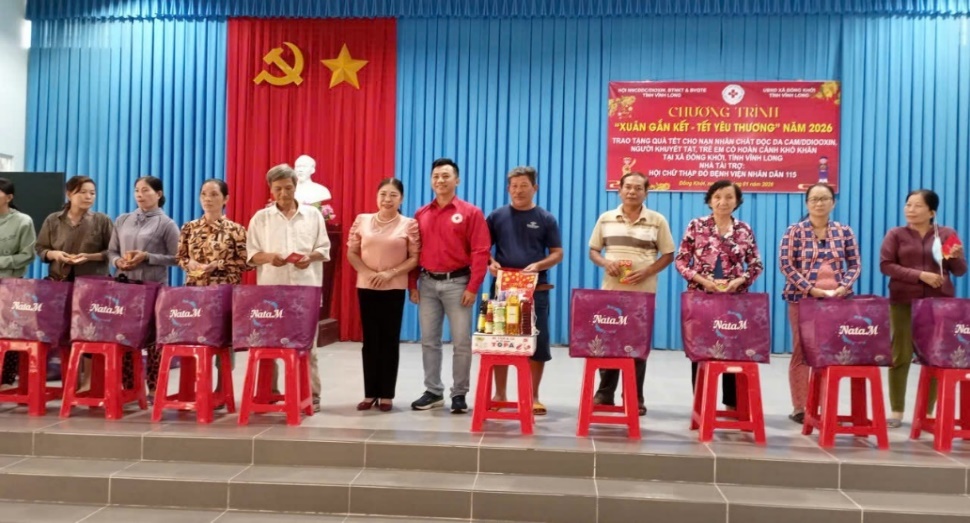 Hội Nạn nhân chất độc da cam/dioxin, Bảo trợ người khuyết tật và Bảo vệ quyền trẻ em tỉnh Vĩnh Long trao quà Tết tại xã Đồng Khởi, Tân Phú và Tiên Thủy