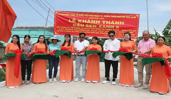 Địa phương xã Vĩnh An và nhà hảo tâm cắt băng khánh thành cầu Sen Xanh 8.
