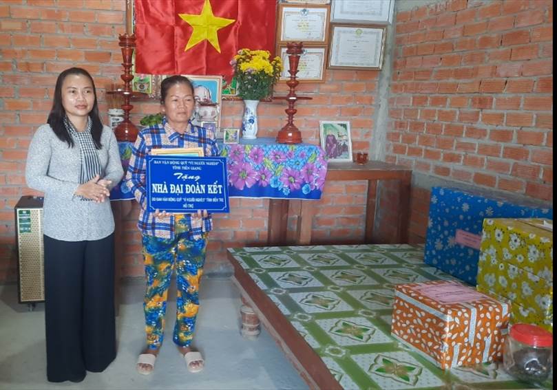 Trước đó, Ban Thường trực Ủy ban MTTQ Việt Nam tỉnh Tiền Giang tổ chức chương trình bàn giao nhà Đại đoàn kết do Quỹ “Vì người nghèo” mỗi tỉnh trong cụm hỗ trợ cho đơn vị đăng cai 01 căn nhà đại đoàn kết.