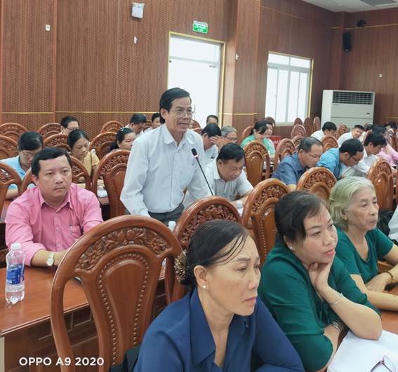 Tại hội nghị, các đại biểu được nghe triển khai kế hoạch về lấy ý kiến sự hài lòng của người dân về kết quả xây dựng huyện nông thôn mới của tỉnh và huyện. Theo đó, Ủy ban MTTQ Việt Nam tỉnh chủ trì, phối hợp với Ủy ban MTTQ Việt Nam huyện và các xã của huyện Mỏ Cày Nam tiến hành lấy ý kiến người dân trên địa bàn huyện, thông qua hình thức là phát phiếu và lấy ý kiến trực tiếp tại các hộ gia đình.