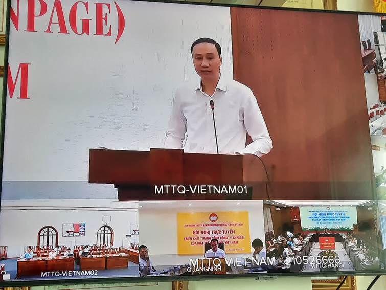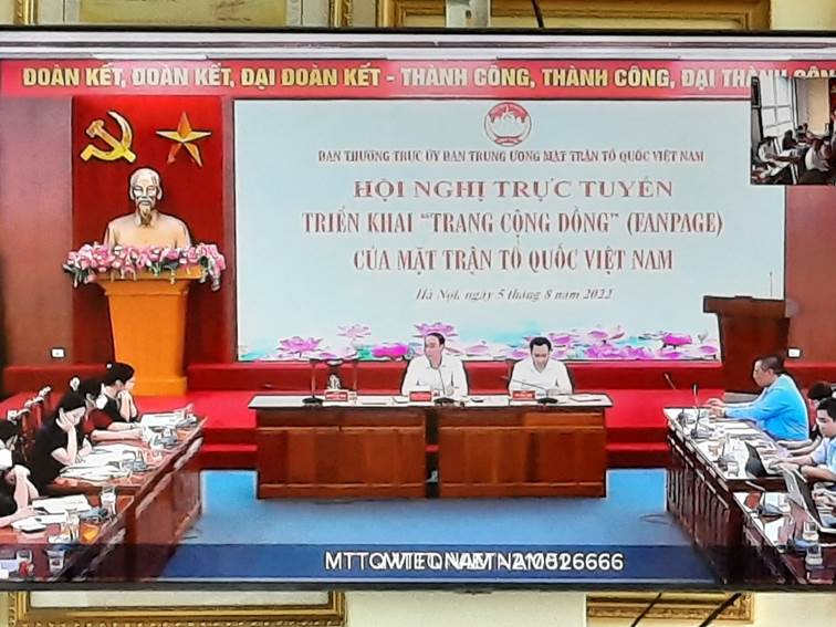 Ngày 05/8/2022, Ban Thường trực Ủy ban Trung ương MTTQ Việt Nam tổ chức hội nghị trực tuyến về triển khai “Trang cộng đồng” (Fanpage) của MTTQ Việt Nam tại điểm cầu Trung ương và điểm cầu 63 tỉnh, thành trong cả nước. Được biết hội nghị triển khai “Trang cộng đồng” (Fanpage) của MTTQ Việt Nam các cấp là hội nghị có số lượng đại biểu tham gia đông nhất từ trước tới nay với hơn 10.400 đại biểu trên toàn quốc.