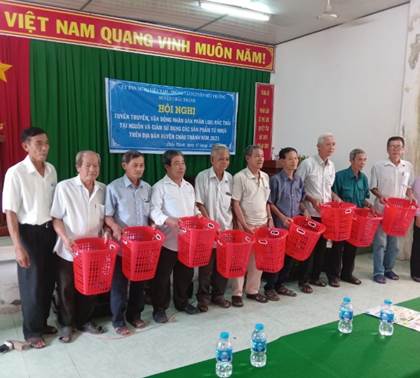 Ban tổ chức hội nghị cũng tặng 100 Sọt Oval, túi rác phân hủy sinh học, tài liệu hướng dẫn phân loại rác thải giúp bà con tiếp cận nhanh thông tin, phối hợp thực hiện có hiệu quả.