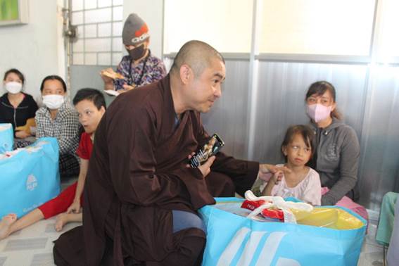 Đại đức Thích Xuân Trí tặng quà cho NNCĐDC