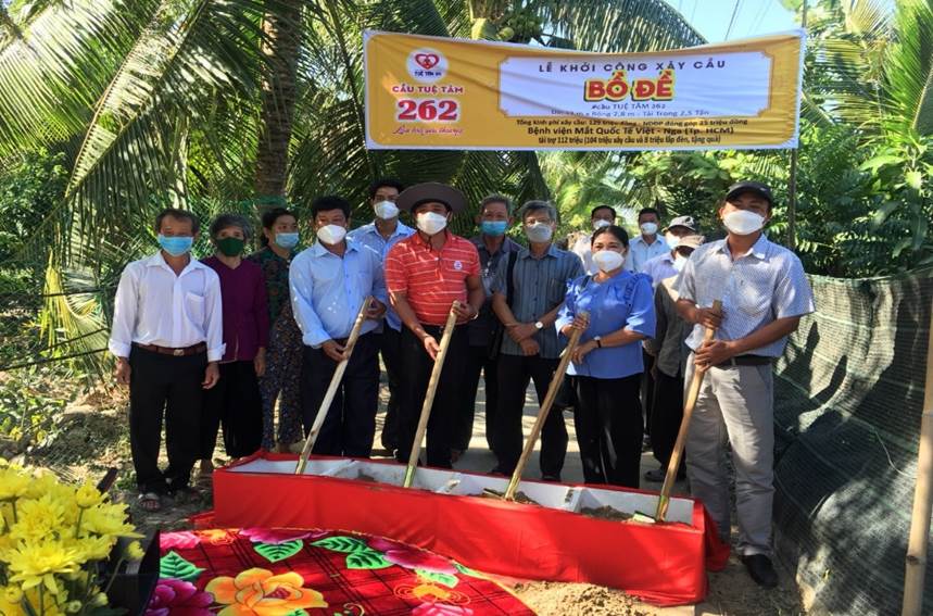 Nhằm hưởng ứng phong trào xây dựng nông thôn mới năm 2022 tại tỉnh Bến Tre, ngày 12/01/2022 Hội Nạn nhân chất độc da cam/dioxin-Bảo vệ quyền trẻ em tỉnh Bến Tre phối hợp Hội Nạn nhân chất độc da cam/dioxin-Bảo vệ quyền trẻ em huyện Mỏ Cày Nam đến huyện Châu Thành và huyện Bình Đại tổ chức khởi công xây dựng cầu Bồ Đề (Cầu Tuệ Tâm 262) tại ấp Giồng Kiến, xã Phú Long, huyện Bình Đại và cầu Thủy Thiên (cầu Tuệ Tâm 263) tại ấp Tiên Đông Thượng, xã Tiên Thủy, huyện Châu Thành. Bà Võ Thị Thủy- Phó Chủ tịch Hội NNCĐDC/dioxin- BVQTE tỉnh Bến Tre, ông Võ Văn Hoàng Hội NNCĐDC/dioxin- BVQTE huyện Mỏ Cày Nam, đại diện đơn vị tài trợ cùng các ngành, đoàn thể xã, ấp và nhân dân địa phương xã Tiên Thủy, huyện Châu Thành và xã Phú Long, huyện Bình Đại dự.