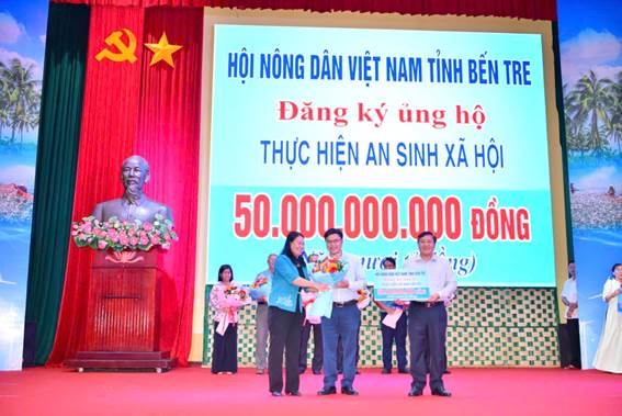Song song đó, các cấp Hội chú trọng thực hiện 03 mũi: “Đẩy mạnh công tác tuyên truyền và đổi mới nội dung, phương thức tập hợp hội viên nông dân”, “Thi đua phát triển kinh tế -xã hội thông qua phong trào “Nông dân thi đua sản xuất kinh doanh giỏi, đoàn kết giúp nhau làm giàu và giảm nghèo bền vững” và “Đẩy mạnh các phong trào thi đua yêu nước” đạt nhiều kết quả nổi bật. Phát động phong trào “Nông dân thi đua sản xuất kinh doanh giỏi, đoàn kết giúp nhau làm giàu và giảm nghèo bền vững”, có 139.737 hộ hội viên nông dân đăng ký danh hiệu “Nông dân sản xuất kinh doanh giỏi”các cấp (đạt 68,47% so với hộ nông nghiệp, vượt chỉ tiêu Trung ương giao). Hội Nông dân phối hợp với các ngành trong thực hiện vận động 1.876,2/2.000 ha dừa hữu cơ; 153/100 ha bưởi da xanh đạt tiêu chuẩn Việt Gap; 80,5/50 ha sầu riêng đạt tiêu chuẩn Việt Gap;…Hội Nông dân tỉnh tổ chức ký kết kế hoạch hợp tác với nhiều doanh nghiệp, các ngành về chuyển đổi số trong nông nghiệp, tuyển sinh và đào tạo nghề cho con em nông dân, hỗ trợ phát triển kinh tế tập thể trong nông nghiệp, các hoạt động chuyển giao khoa học kỹ thuật, đẩy mạnh kết nối tiếp cận vốn tín dụng cho nông dân;...