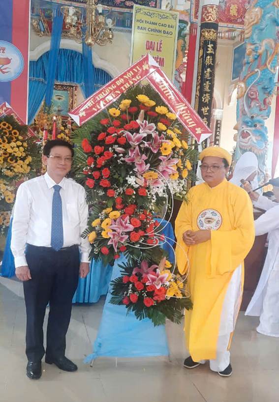 Phó Trưởng ban Ban Tôn giáo Chính phủ Nguyễn Ánh Chức tặng hoa chúc mừng