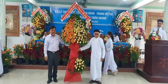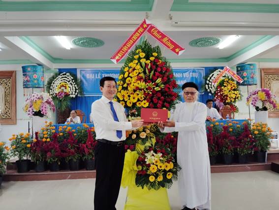Ông Nguyễn Ánh Chức, Phó Trưởng ban Ban Tôn giáo Chính phủ tặng hoa và quà chức mừng