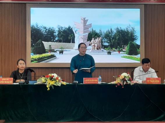 Đ/c Nguyễn Thị Hồng Nhung-BTĐĐ, Chủ tịch UBMTTQ tỉnh phát biểu tại buổi làm việc với TT thành ủy Bến Tre về đại hội