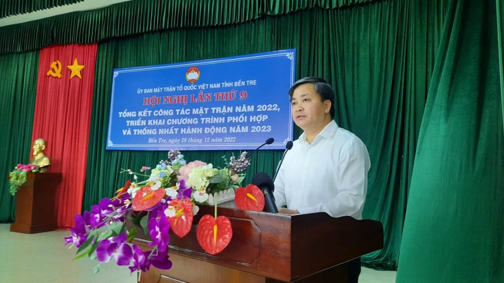 Ông Lê Đức Thọ, Bí thư Tỉnh ủy Bến Tre phát biểu chỉ đạo tại Hội nghị tổng kết công tác Mặt trận năm 2022.