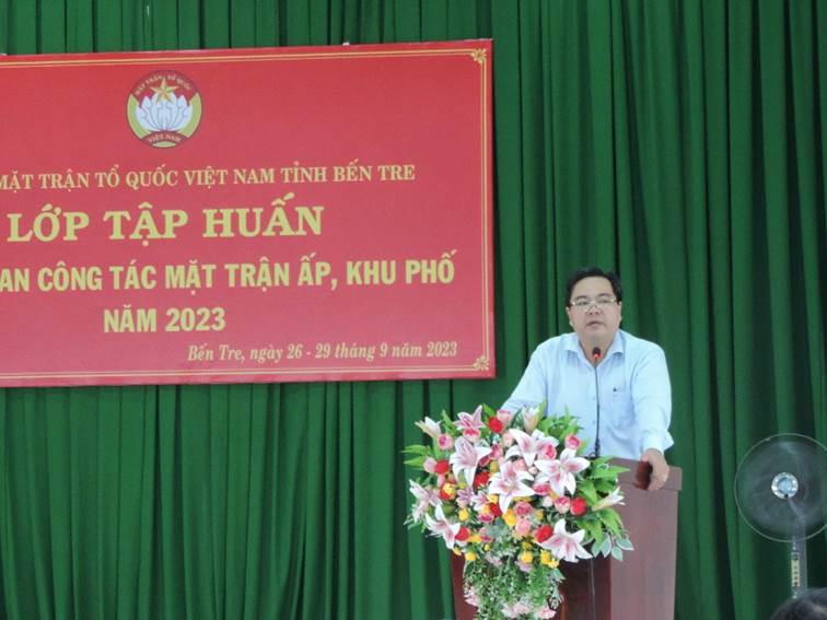 Trong thời gian 4 ngày (từ 26 đến 29-9-2023), 142 học viên sẽ được chuyển tải 06 chuyên đề và có một buổi đi thực tế tại xã Châu Hưng, huyện Bình Đại, có buổi tọa đàm về nâng cao chất lượng hoạt động của Ban công tác Mặt trận trong việc phát huy vai trò của các tổ chức thành viên.