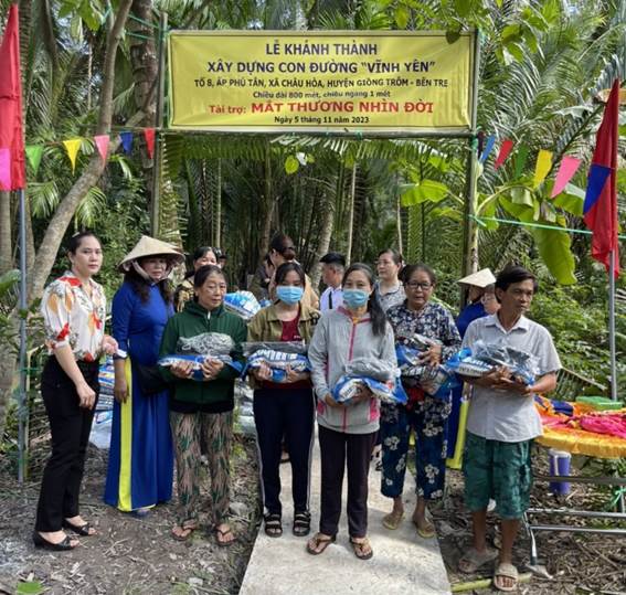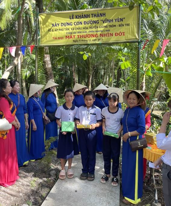Công trình đường tổ 8, ấp Phú Tân xây dựng với quy mô đường dài 800m, ngang 01m, kinh phí xây dựng trên 62.000.000 đồng, trong đó nhóm “Mắt thương nhìn đời” hỗ trợ số tiền 40.000.000 đồng, số còn lại do người dân trong tổ đóng góp và hỗ trợ trên 100 ngày công lao động để hoàn thành công trình.