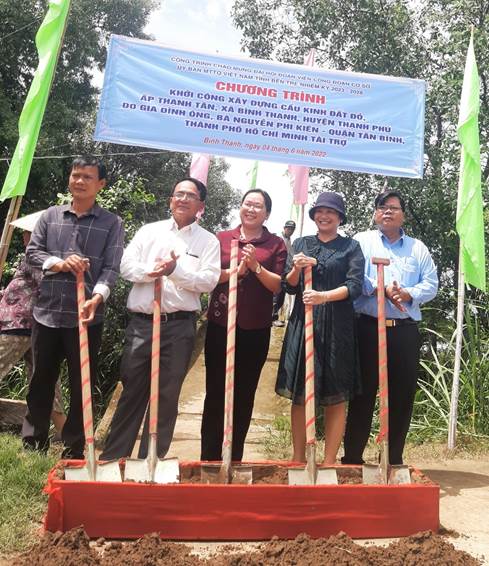 Thiết thực lập thành tích chào mừng đại hội công đoàn các cấp tỉnh Bến Tre tiến tới Đại hội XIII Công đoàn Việt Nam, nhiệm kỳ 2023-2028 với phương châm: “Đổi mới - Dân chủ - Đoàn kết - Phát triển”. Theo tinh thần Kế hoạch đại hội công đoàn cấp cơ sở sẽ diễn ra từ 03/01/2023 và hoàn thành trước ngày 30/4/2023 và để thiết thực chào mừng Đại hội Đoàn viên Công đoàn cơ sở Ủy ban MTTQ Việt Nam tỉnh nhiệm kỳ 2023-2028, Ban Chấp hành Công đoàn cơ quan đã vận động gia đình ông, bà Nguyễn Phi Kiên ở quận Tân Bình, Thành phố Hồ Chí Minh tài trợ 100.000.000 đồng để xây dựng cầu giao thông nông thôn tại xã Bình Thạnh, huyện Thạnh Phú, đây là công trình chào mừng đại hội.
