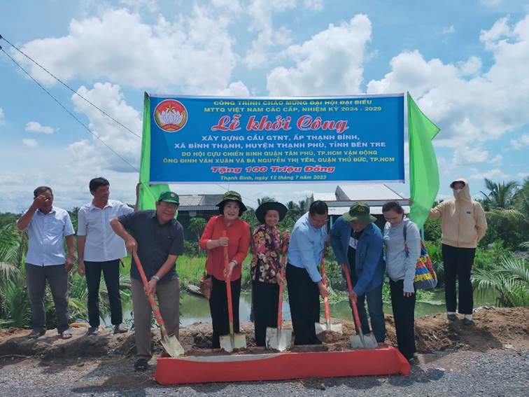 Ngày 12/7/2023, Ban Thường trực Ủy ban MTTQ Việt Nam tỉnh Bến Tre, Ban Bảo trợ Hội chữ thập đỏ Quận Tân Phú, Thành phố Hồ Chí Minh phối hợp với Ủy ban MTTQ Việt Nam xã Bình Thạnh, Mỹ Hưng (huyện Thạnh Phú) tổ chức lễ khởi công xây dựng 03 cầu giao thông nông thôn tại ấp Thạnh Bình, Thạnh Tân, xã Bình Thạnh (02 cây) và cầu Kênh Sườn, ấp Thạnh Khương A, xã Mỹ Hưng.